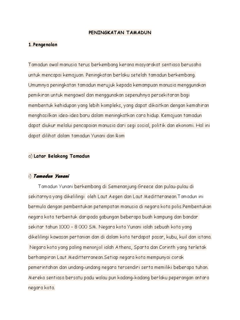Bagaimanapun Islam meletakkan agama sebagai nadi utama didalam pembinaan tamadun manakala bangsa tidak memberikan suatu makna yang cukup besar kepada tamadun. Tamadun Rom merupakan kesinambungan daripada Tamadun Yunani. View Homework Help - Folio - Tamadun Rom 2003doc from CLUSTER SCIENCE 1102 at SMK CONVENT KAJANG.